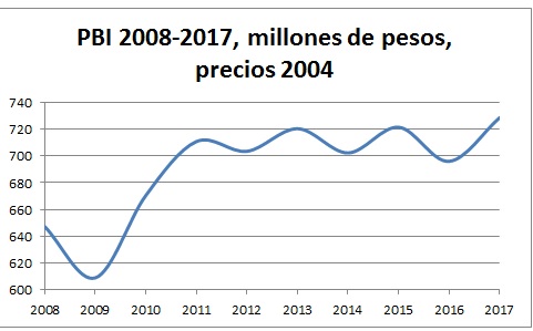 De hecho, en los seis años que van de 2011 a 2017 el producto creció apenas el 2,5%. Dado que el crecimiento poblacional de Argentina es del 1% anual, el producto por habitante disminuyó un 3,5%. Lee el resto de esta entrada »